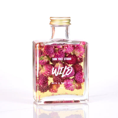 Wild Bath + Body Oil absorbs quickly into skin, leaving it moisturized and non-greasy. The combination of wintergreen and spruce essential oils give this body oil a fresh and energizing aroma. Wintergreen oil works to temporarily relieve muscle pain, while oils of cherry kernel and jojoba deeply nourish skin and absorb quickly. Wild can be used in the bath, directly on the body as a moisturizer, or as a stimulating massage oil.